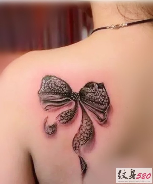 小女生最爱的蕾丝蝴蝶结纹身