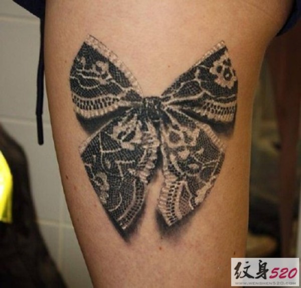 小女生最爱的蕾丝蝴蝶结纹身