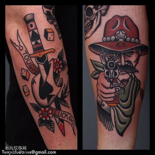 花腿纹身--一组大黑腿纹身图案作品欣赏