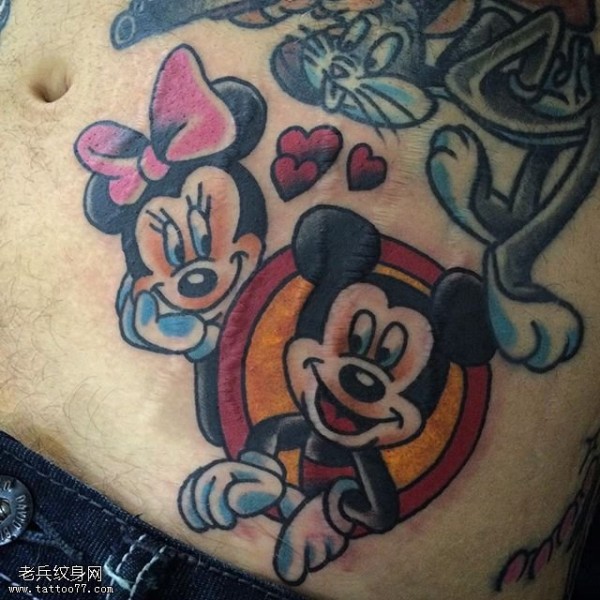 腹部的米奇纹身图案