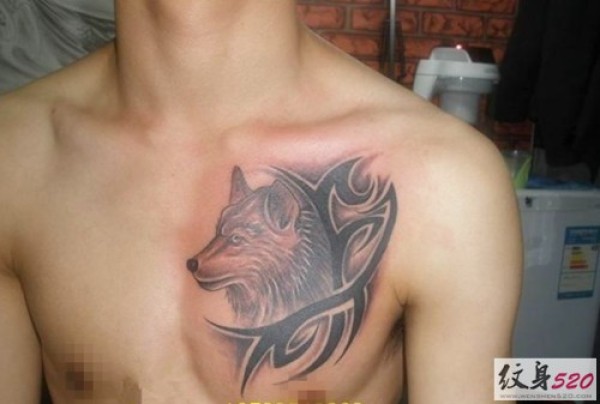 男士胸部霸气狼头纹身图片