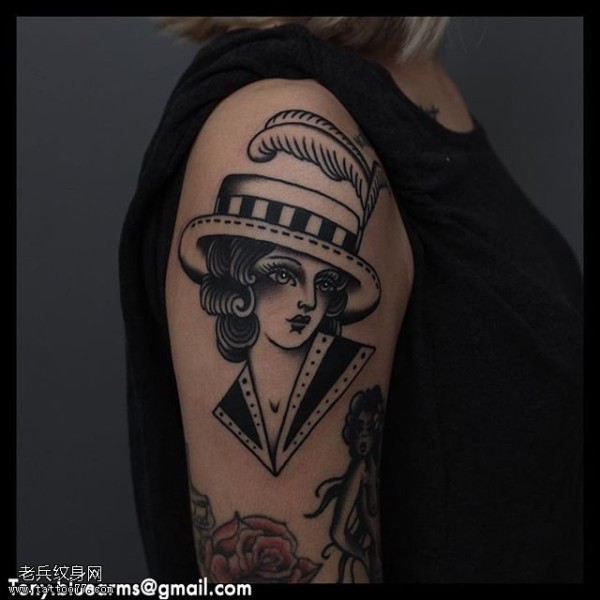 女生肩花纹身_15张女性双肩对称的肩花纹身图案作品图片