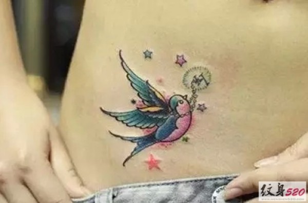 侧腰部可爱的小燕子纹身图案大全