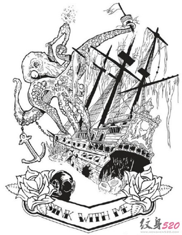 一组17张动漫海贼王路飞纹身手稿图案素材