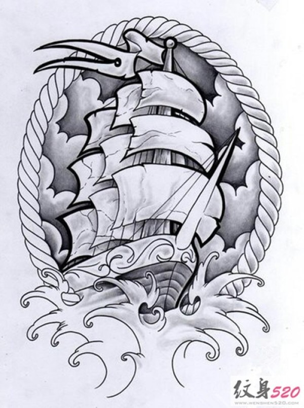 龙纹身手稿_一组老传统黑灰龙手稿纹身图案