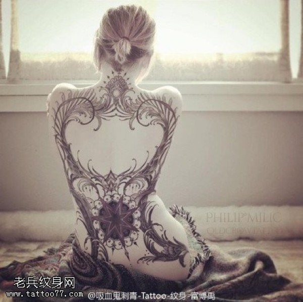 性感女生满背创意文身作品
