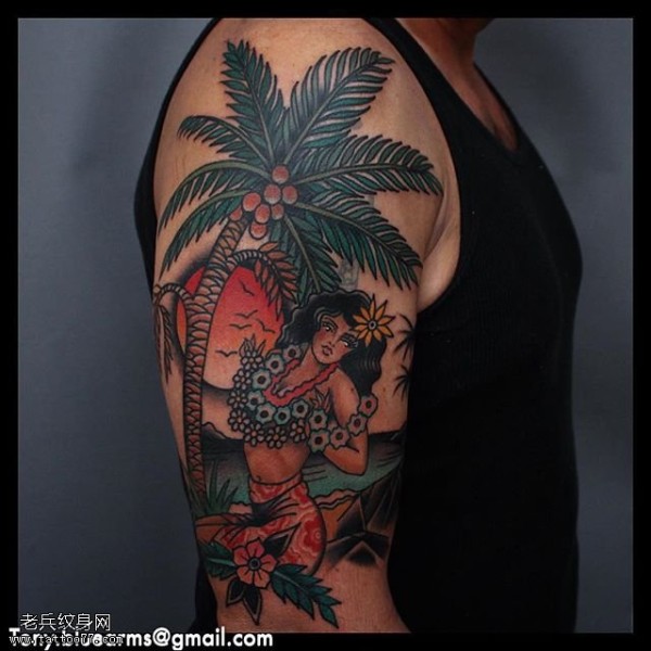 女生肩花纹身_15张女性双肩对称的肩花纹身图案作品图片