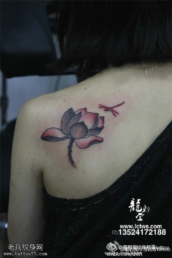 女生肩花纹身_15张女性双肩对称的肩花纹身图案作品图片