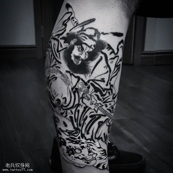 腿部点刺武松打虎纹身图案