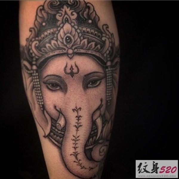 小腿上一款大象纹身图案_腿部纹身图案大全_纹身图吧