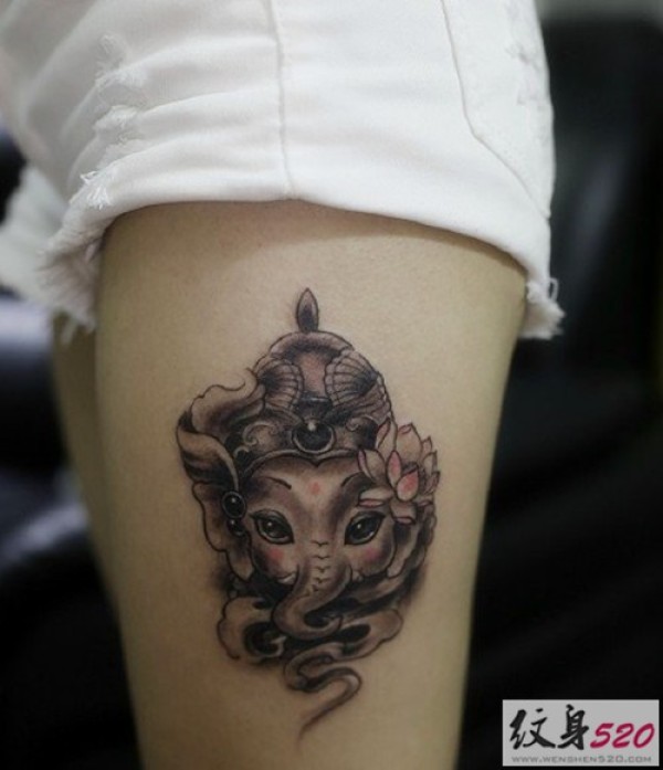 小腿上一款大象纹身图案_腿部纹身图案大全_纹身图吧
