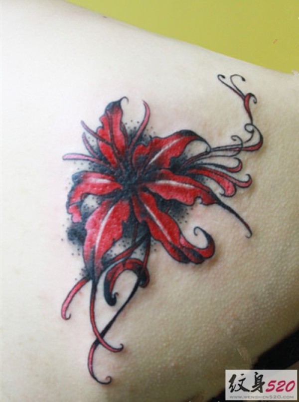 女生玲珑腰部的依兰花图案纹身女生腰部嫣红底_腰部纹身图案大全_纹身图吧
