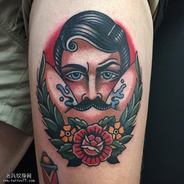 肩部的人物肖像纹身图案
