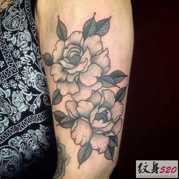 后肩唯美花藤英文图案图片_植物纹身图案大全_纹身图吧