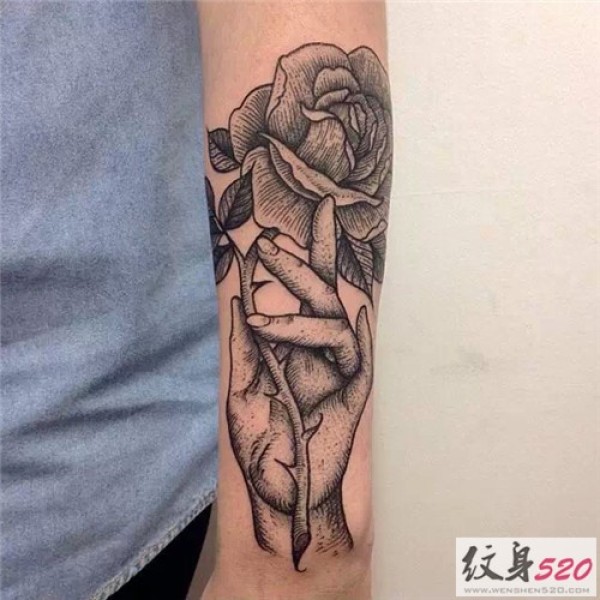 欧美玫瑰纹身 男生手臂上花朵纹身图片
