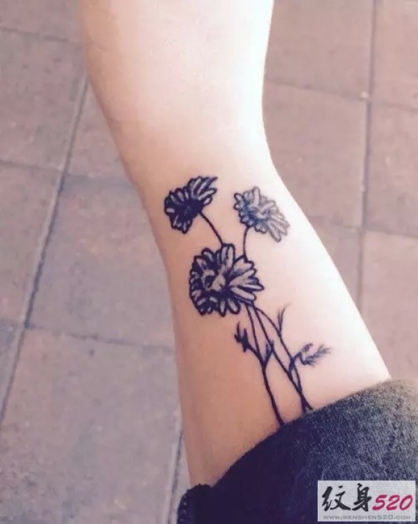 清新花朵腿部纹身图案图片_植物纹身图案大全_纹身图吧