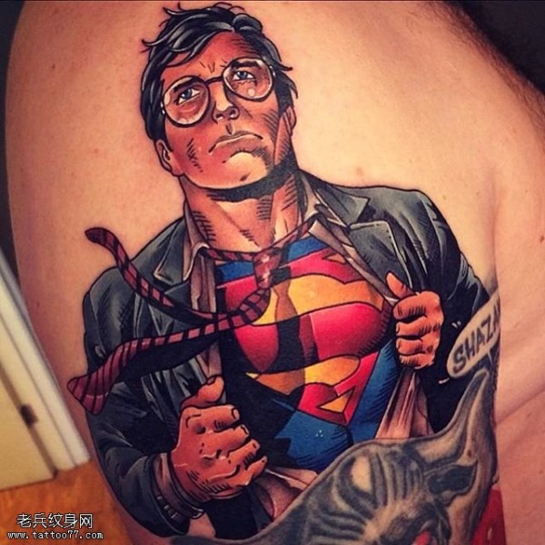 肩部的超人纹身图案