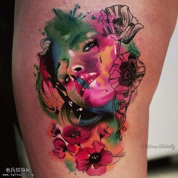 清纯女孩腿上可爱肖像纹身图片_肖像纹身图案大全_纹身图吧