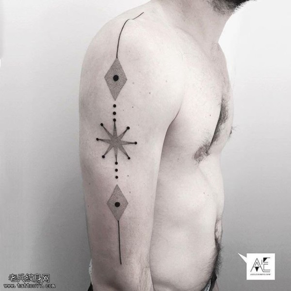 肩部经典点刺图腾纹身图案