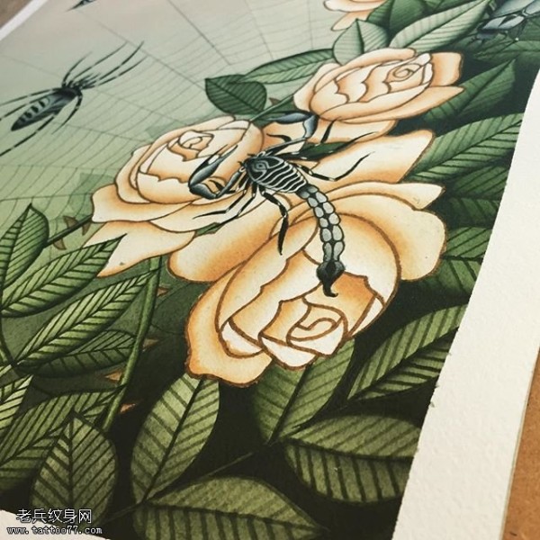 手稿玫瑰蝎子纹身图案