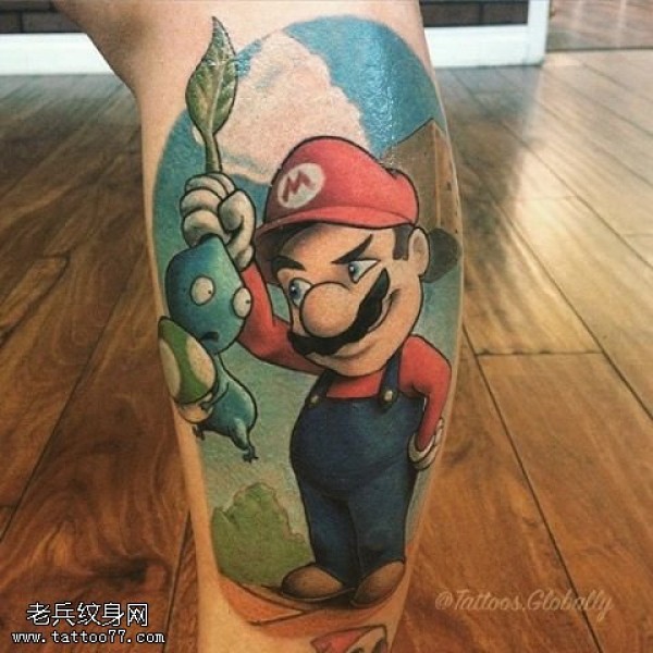 小腿彩绘卡通人纹身图案