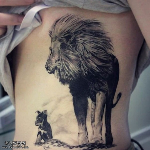 腹部的大狮子纹身图案