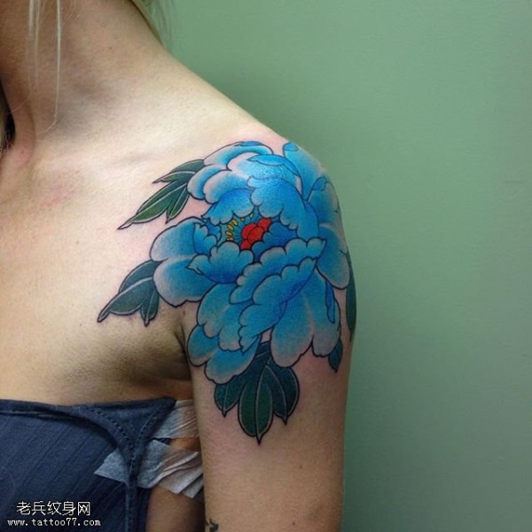 女生肩花纹身_15张女性双肩对称的肩花纹身图案作品图片