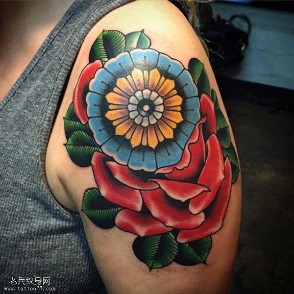 女生肩花纹身_15张女性双肩对称的肩花纹身图案作品图片