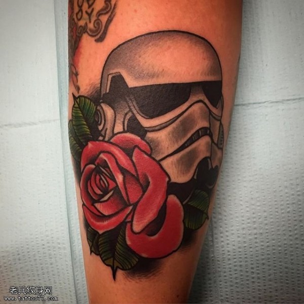 小腿头盔玫瑰纹身图案