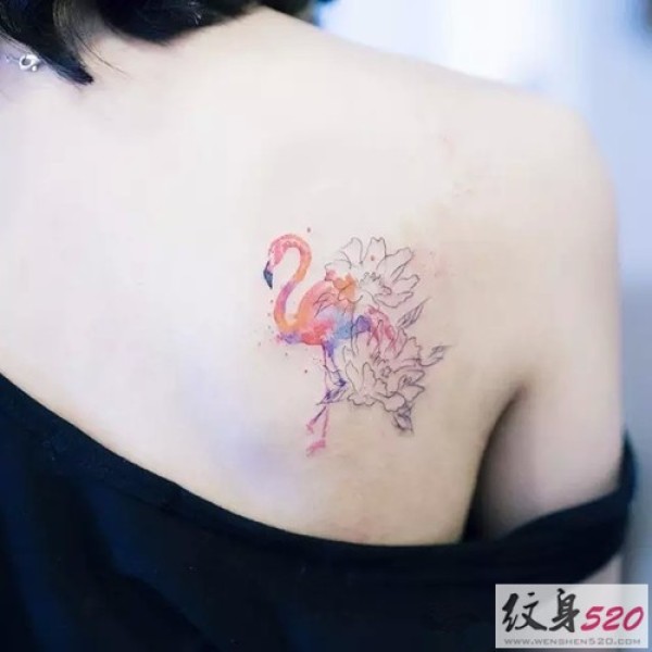 后肩唯美花藤英文图案图片_植物纹身图案大全_纹身图吧