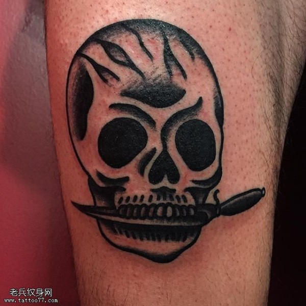 腿部的大骷髅纹身图案