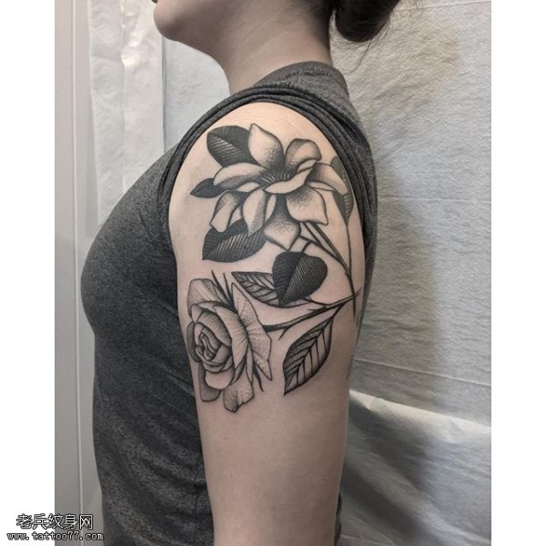 肩部复古花卉纹身图案