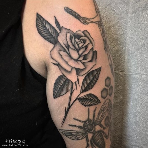 女生肩花纹身_15张女性双肩对称的肩花纹身图案作品图片