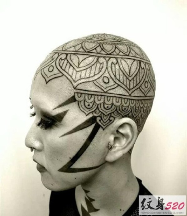 霸气男头部时尚纹身图片_头部纹身图案大全_纹身图吧
