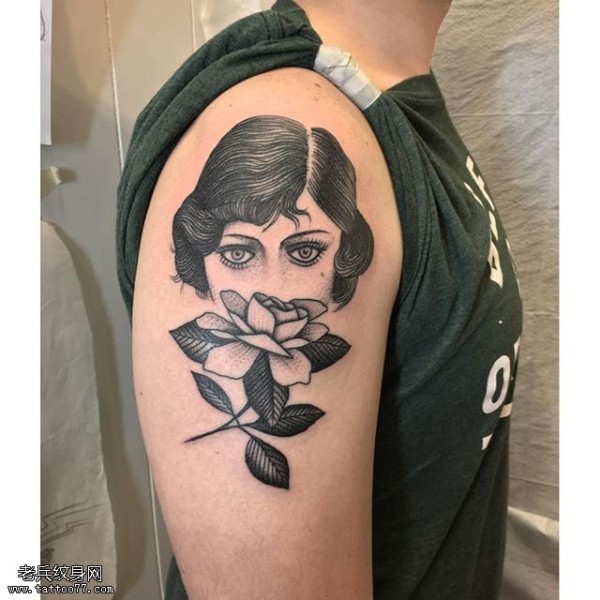 女生肩花纹身_15张女性双肩对称的肩花纹身图案作品图片