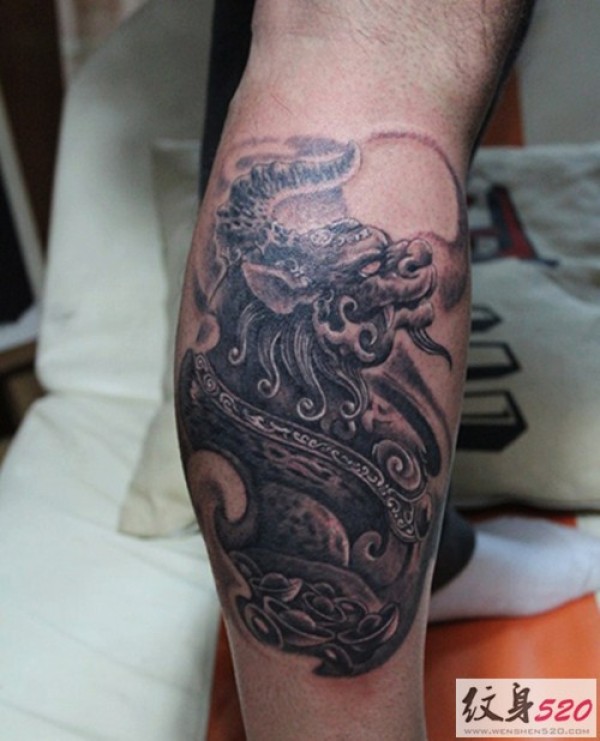 小腿经典麒麟纹身图案