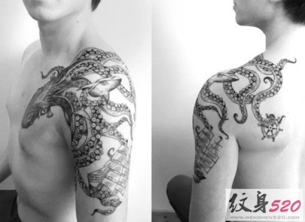 女生肩花纹身_15张女性双肩对称的肩花纹身图案作品图片