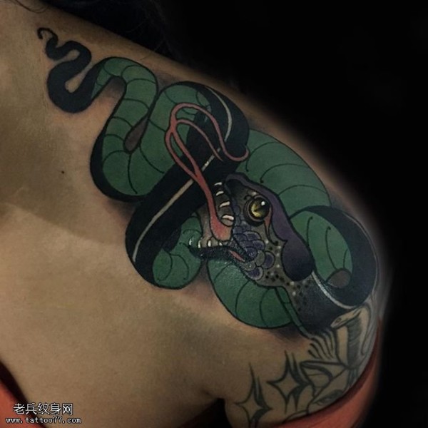 肩部的青蛇纹身图案