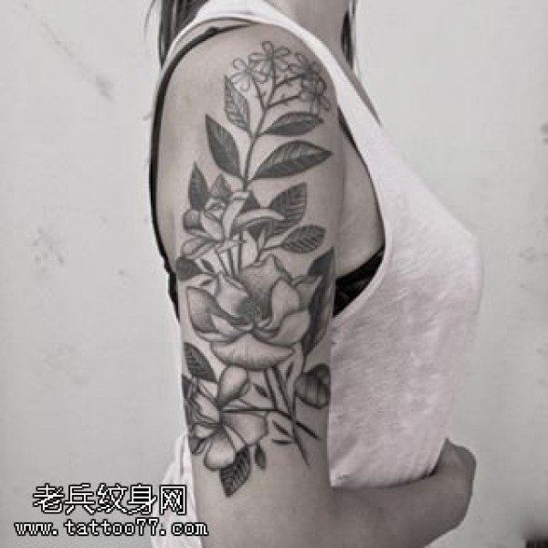 后肩唯美花藤英文图案图片_植物纹身图案大全_纹身图吧