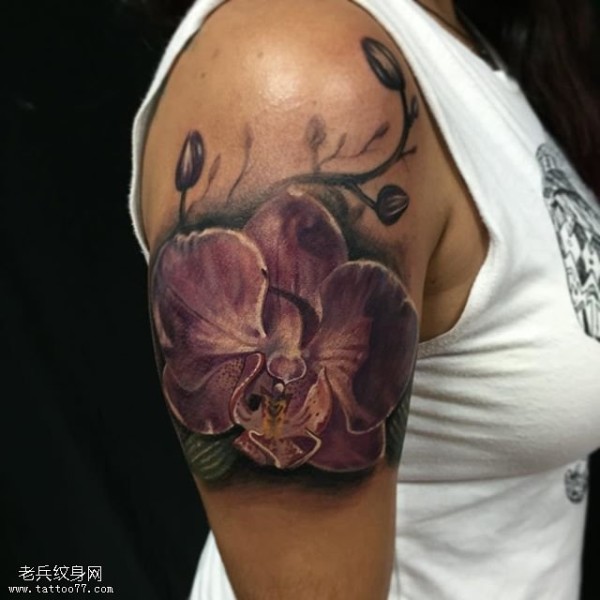 女生肩花纹身_15张女性双肩对称的肩花纹身图案作品图片