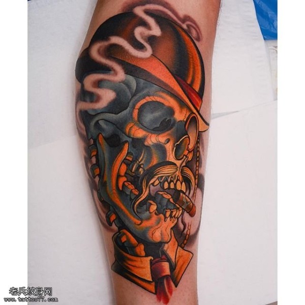 小腿的骷髅头纹身图案