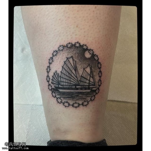 小腿点刺船锚纹身图案