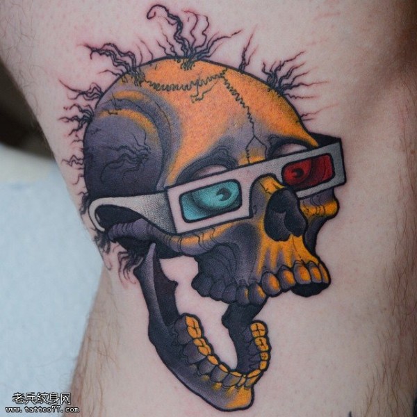 腿部的骷髅头纹身图案