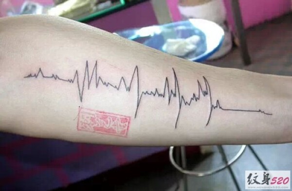 小臂内侧心电图纹身
