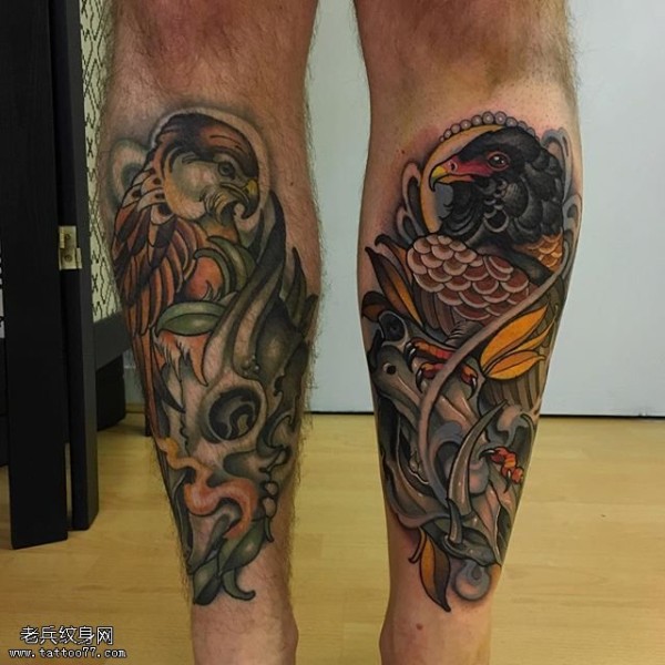 小腿肚的鸟儿纹身图案