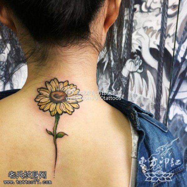 草图感向日葵纹身图案_植物纹身图案大全_纹身图吧