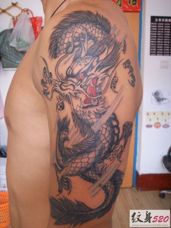 龙纹身手稿_一组老传统黑灰龙手稿纹身图案