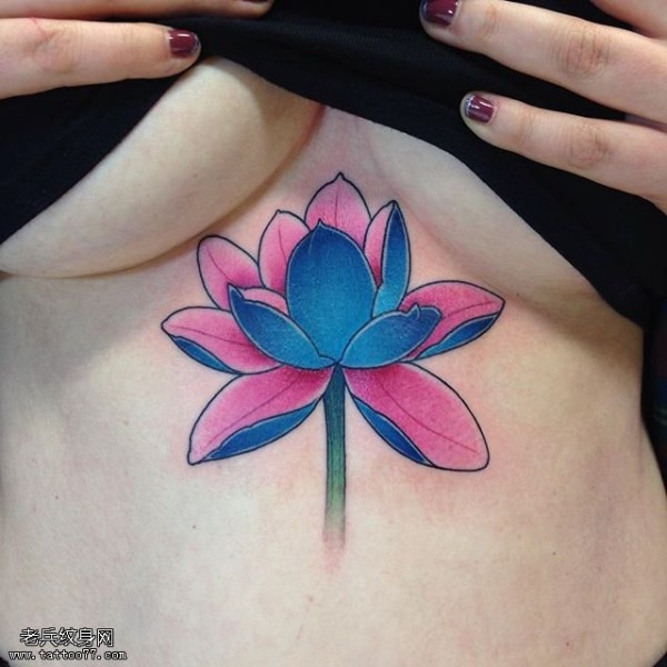 胸部彩绘莲花纹身图案