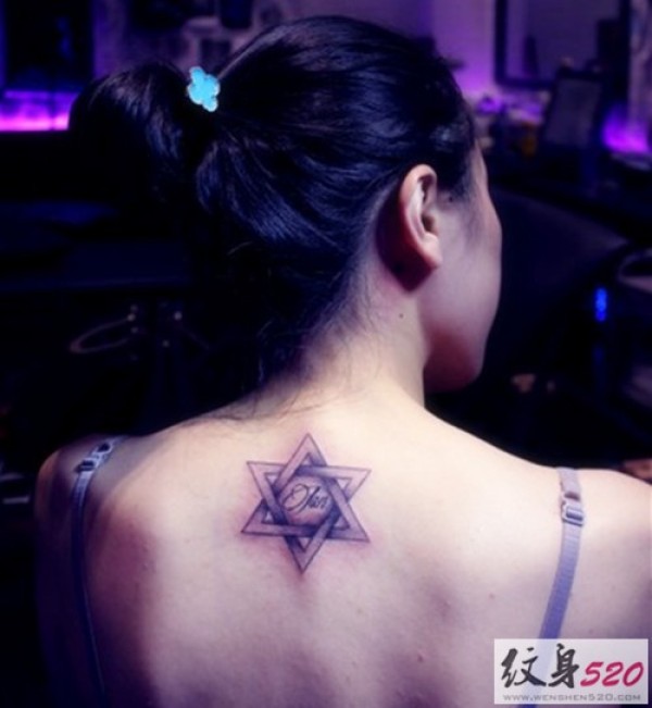 颈背部小巧六芒星纹身