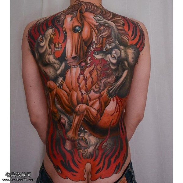满背的松鼠骏马纹身图案
